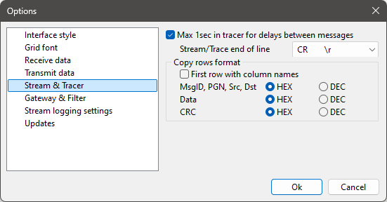 - "Настройка копирования строк"/"Copy rows format" — группа настроек, указывающая в каком виде из трейсера будут копироваться данные в буфер обмена.